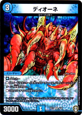 ディオーネ VR 水文明 (3) クリーチャー:シー・ハッカー 3000 ブロッカースピードアタッカー」を持つクリーチャーは、バトルゾーンに出たターン、攻撃できない。 このクリーチャーは攻撃できない。