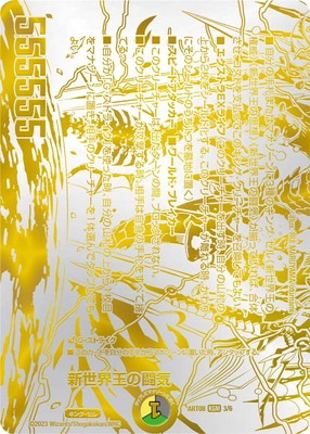 自分の手札またはマナゾーンに3種のキング・セル《新世界王の権威》《新世界王の思想》《新世界王の闘気》が揃っていれば、合体させ、コストを支払ってこのキング・クリーチャーを召喚してもよい。