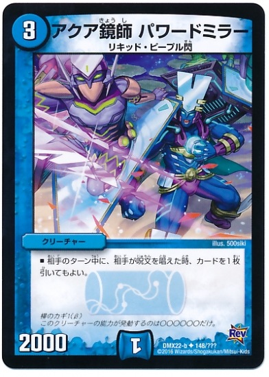 1000 このクリーチャーがバトルゾーンに出た時、進化ではないコスト7以下のクリーチャーを1体選び、持ち主のマナゾーンに置く。 革命2―自分のシールドが2つ以下なら、このクリーチャーに「S・トリガー」を与える。