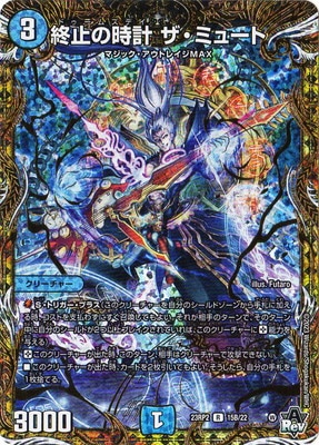 終止の時計 ザ・ミュート R 水文明 (3) クリーチャー:マジック・アウトレイジMAX 3000 S・トリガー・プラス(このクリーチャーを自分のシールドゾーンから手札に加える時、コストを支払わずにすぐ召喚してもよい。それが相手のターンで、そのターン中に自分のシールドが2つ以上ブレイクされていれば、このクリーチャーにP能力を与える) P?このクリーチャーが出た時、このターン、相手はクリーチャーで攻撃できない。 このクリーチャーが出た時、カードを2枚引いてもよい。そうしたら、自分の手札を1枚捨てる。 【カードの光り方は全て同じ在庫として管理しております。ご購入の際にお選びすることができませんので予めご了承ください。】